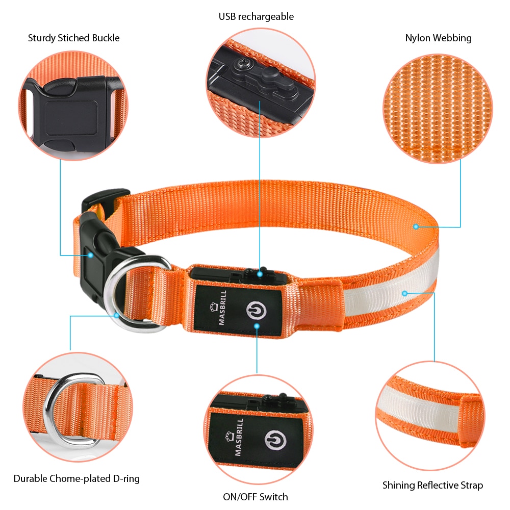 MASBRILL LED Dog Collar Luminous Pet Supplies Dog Collar Luminous Safety Glow Necklace Flashing Lighting Up Collars Accessories