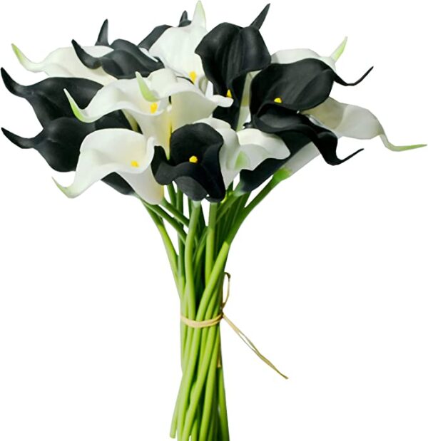 Mandy’s 20pcs Black and White Flowers Artificial Calla Lily Silk Flowers 13.4″ for Home Kitchen & Wedding